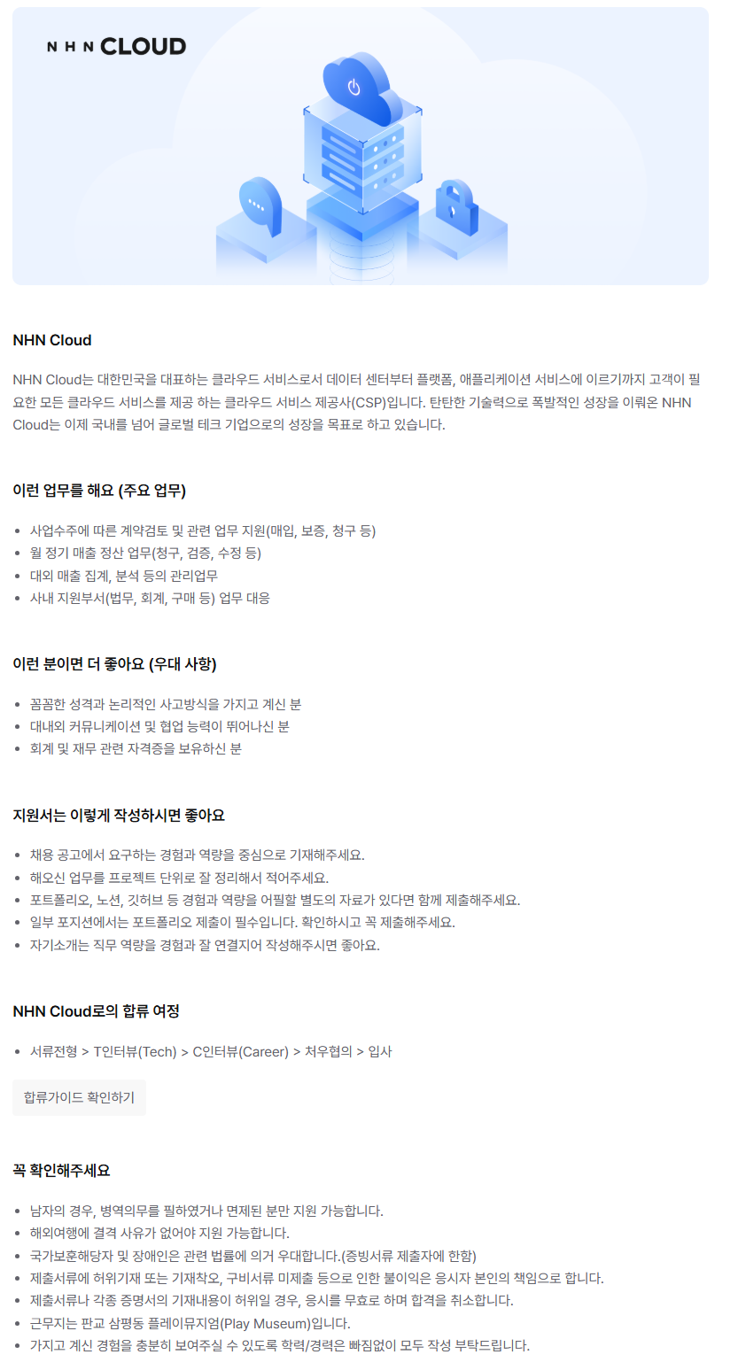 [NHN클라우드] 사업지원 신입 채용공고(채용완료 시 조기마감)